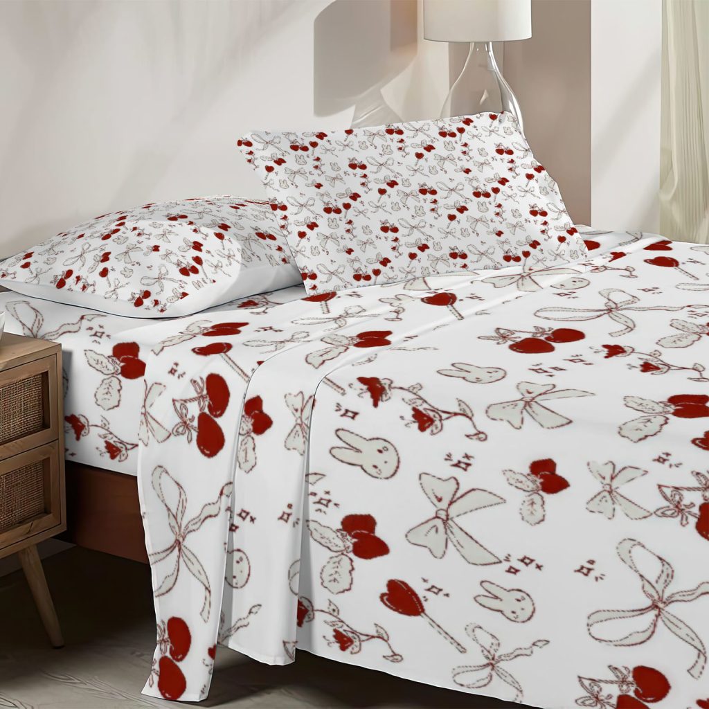Twin Size Bow Fitted Sheet Bow Bed Flat Sheets Bedding Set Deep Pockets Up To 16″