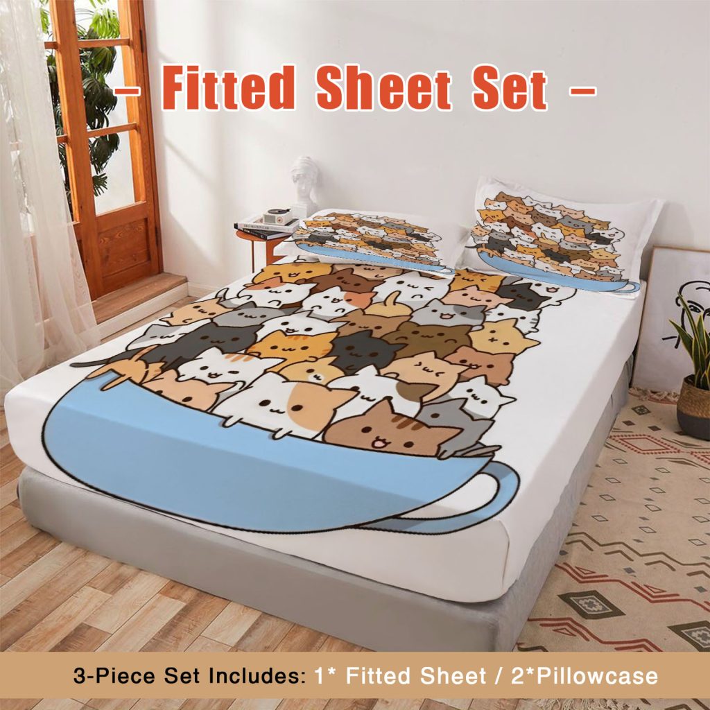 Chubby Cat Fitted Sheet Cute Comic Sensation Bed Sheets Bedding Set Deep Pockets Up To 16″ Bedroom Decor