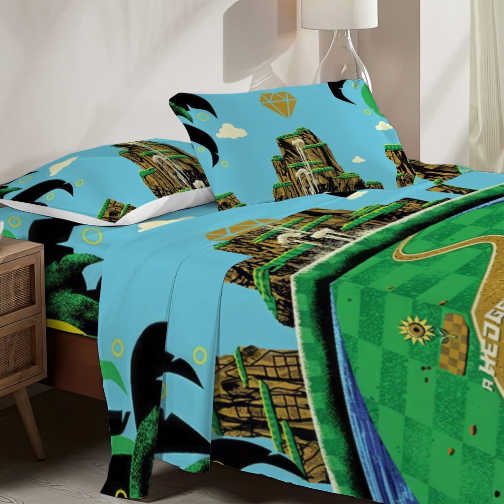 Twin Size Blue Hedgehog Fitted Sheet High-Speed Adventure Bed Flat Sheets Bedding Set Deep Pockets Up To 16″
