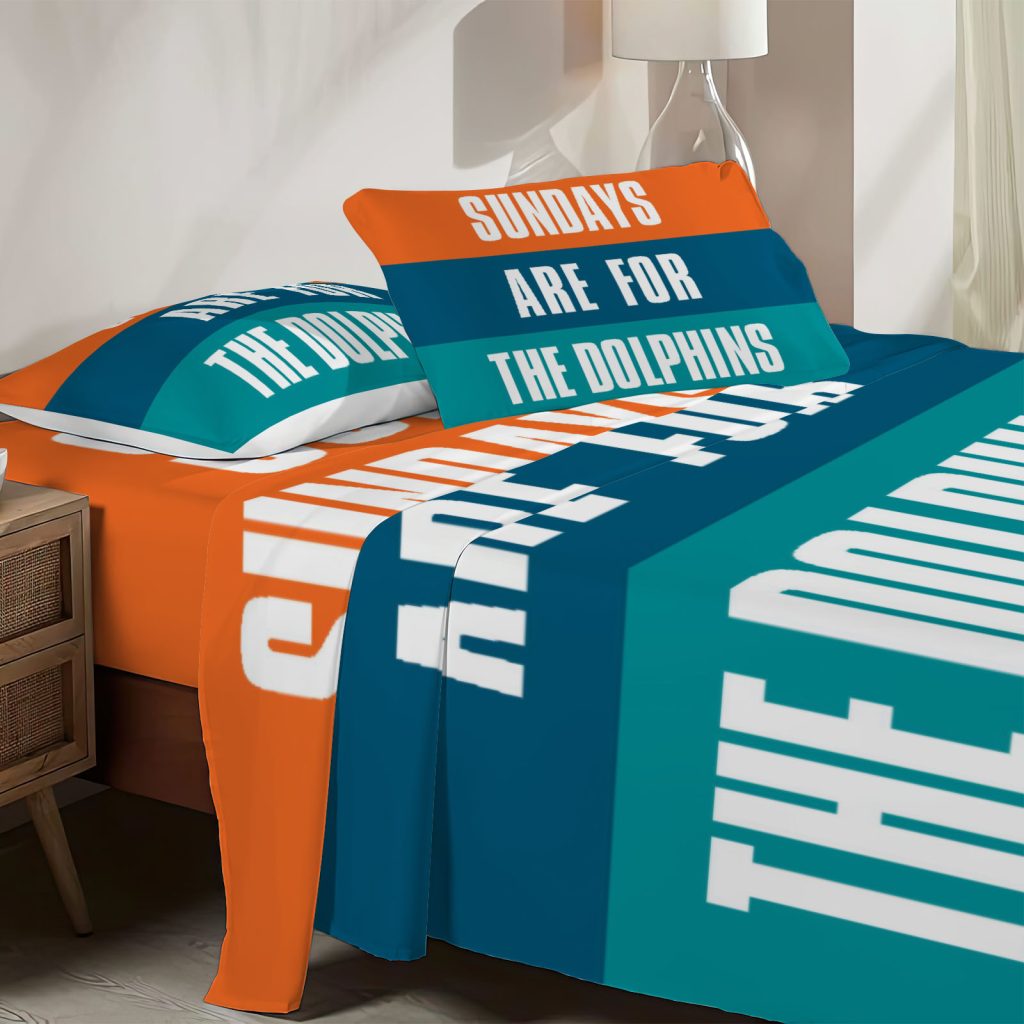 Twin Size Miami Football Fitted Sheet Professional Sports Team Bed Flat Sheets Bedding Set Deep Pockets Up To 16″