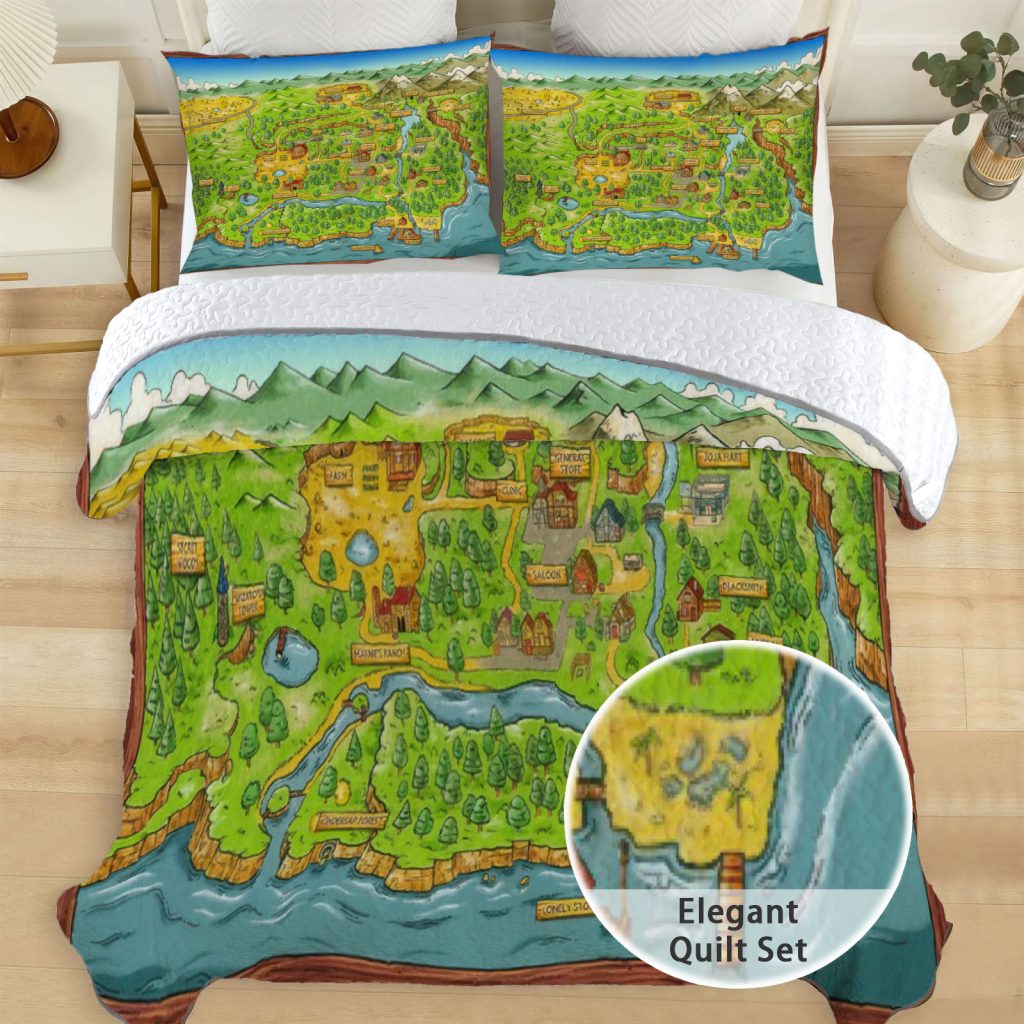 Farming Adventure Quilt Bedspreads Game Bed Set Bedding Coverlet