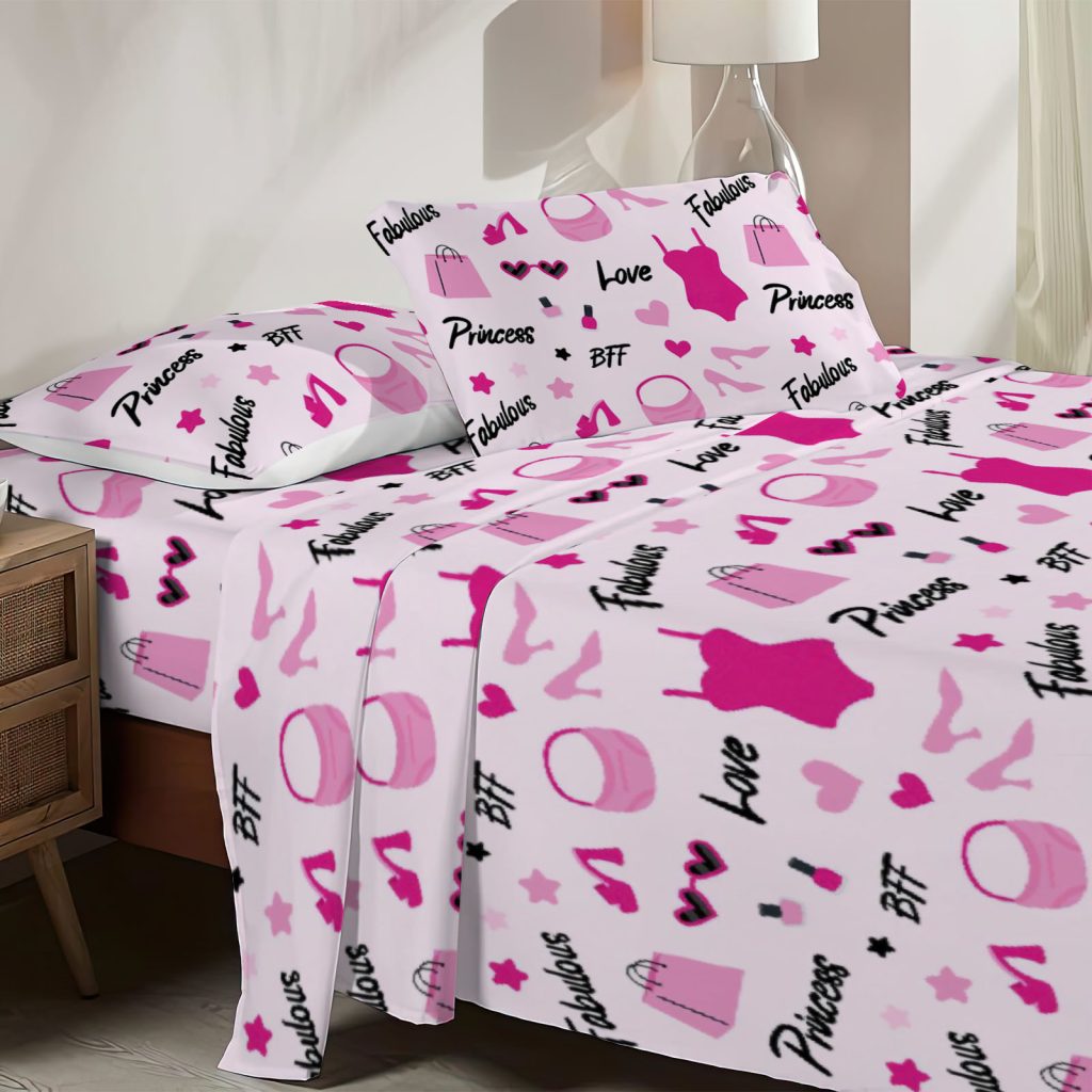 Twin Size Fashion Doll Fitted Sheet Pretty Girl Bed Flat Sheets Bedding Set Deep Pockets Up To 16″