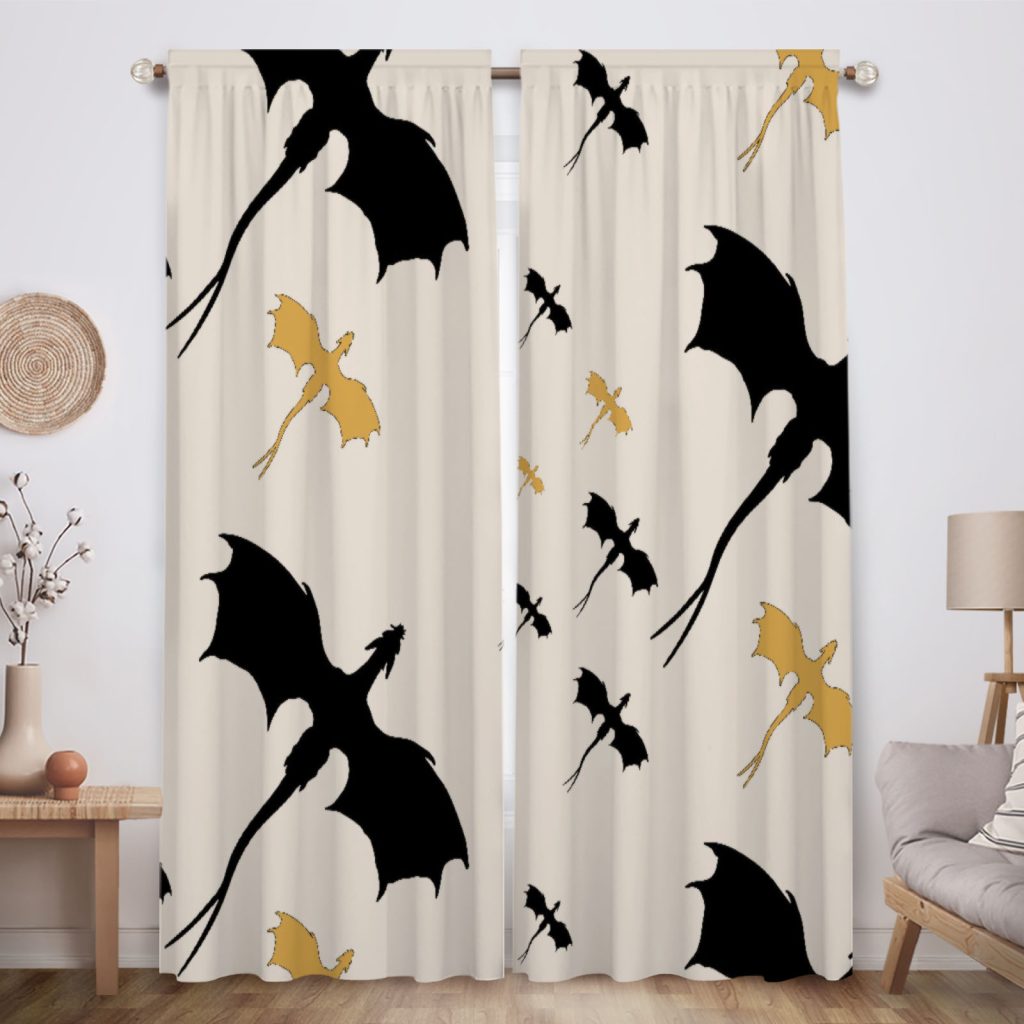 Dragon Window Curtains Winged Guardians Drapes Bedroom Home Room Decor 82″ X 84″