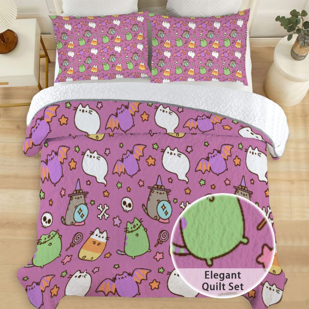 Chubby Cat Quilt Bedspreads Cute Comic Sensation Bed Set Bedding Coverlet