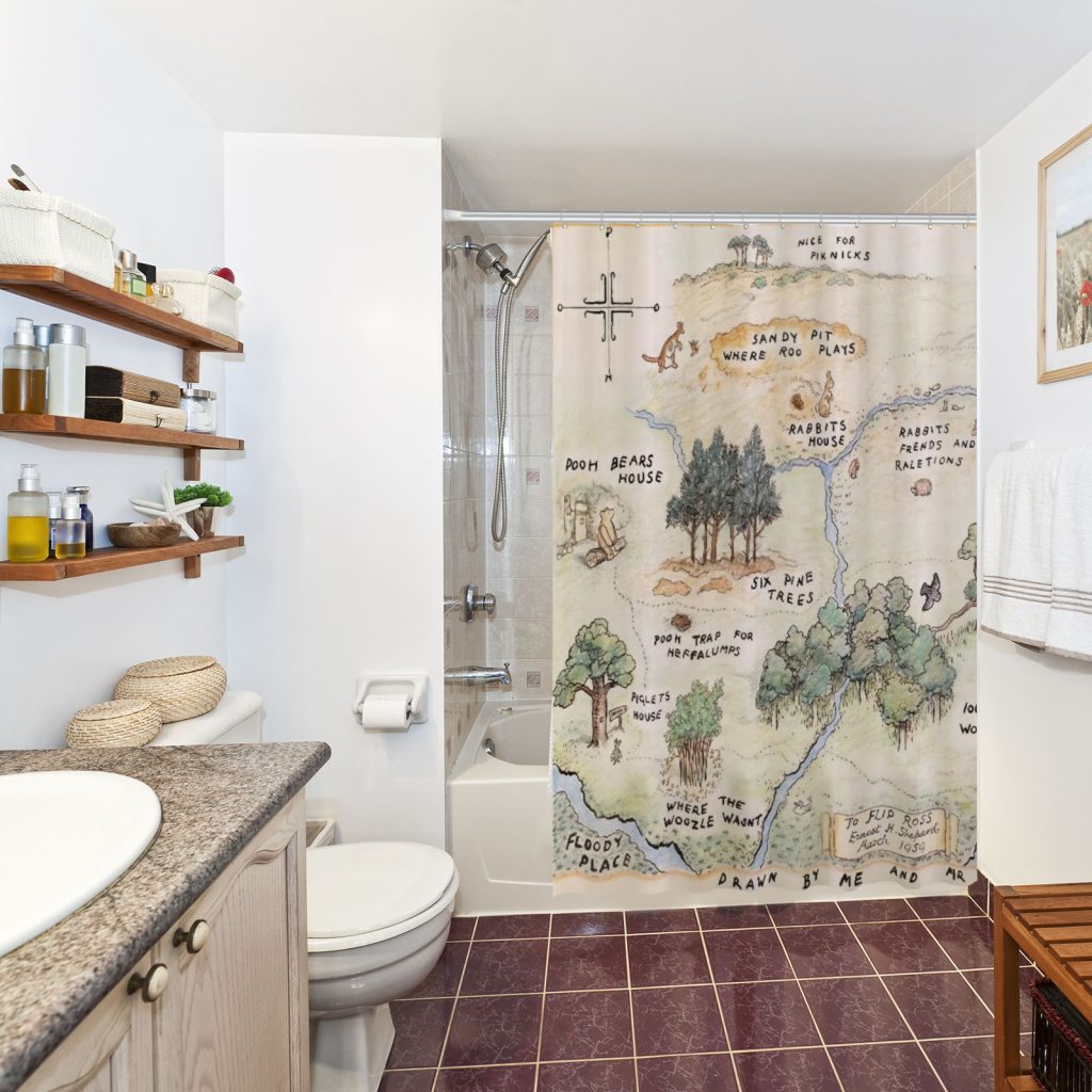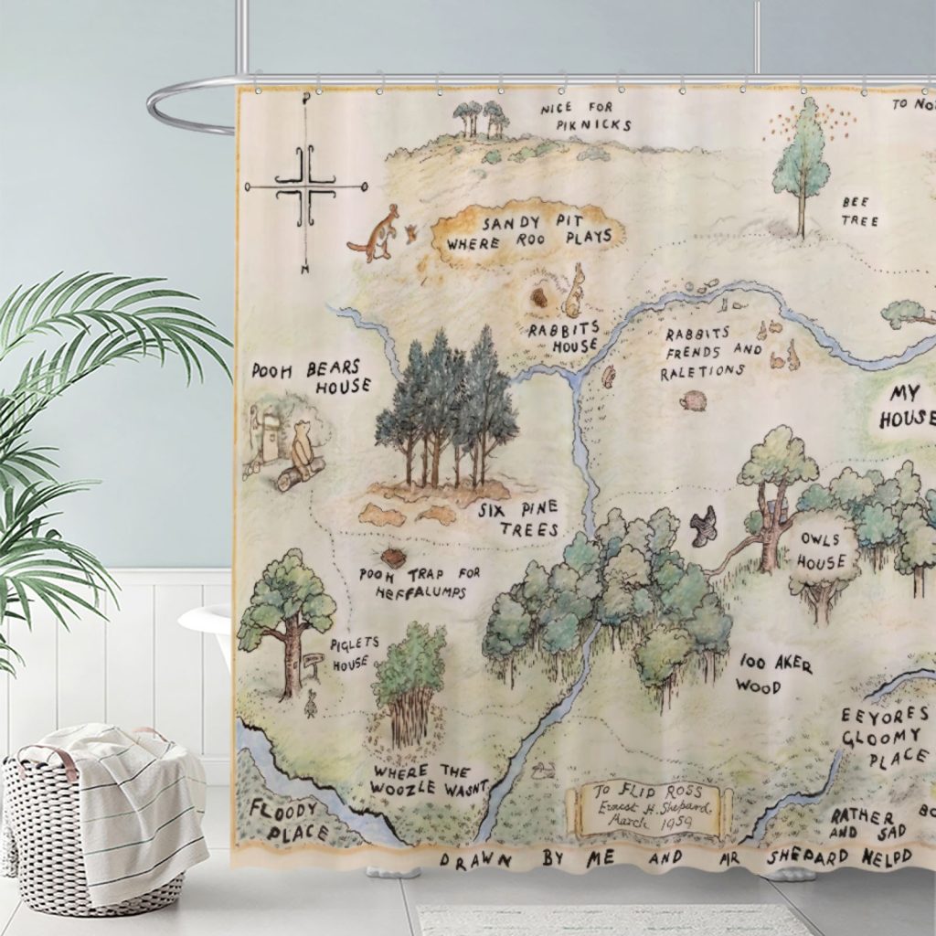 Honey-Loving Bear Shower Curtain,Children’S Literature Bathroom Decor,72″X72″(Hooks Not Included)