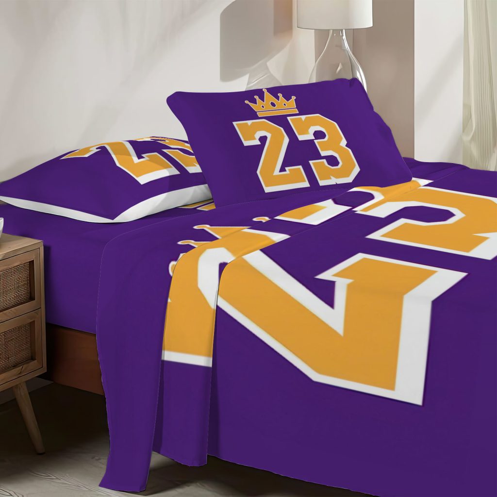 Twin Size Purple Warriors Fitted Sheet Basketball Legends Bed Flat Sheets Bedding Set Deep Pockets Up To 16″