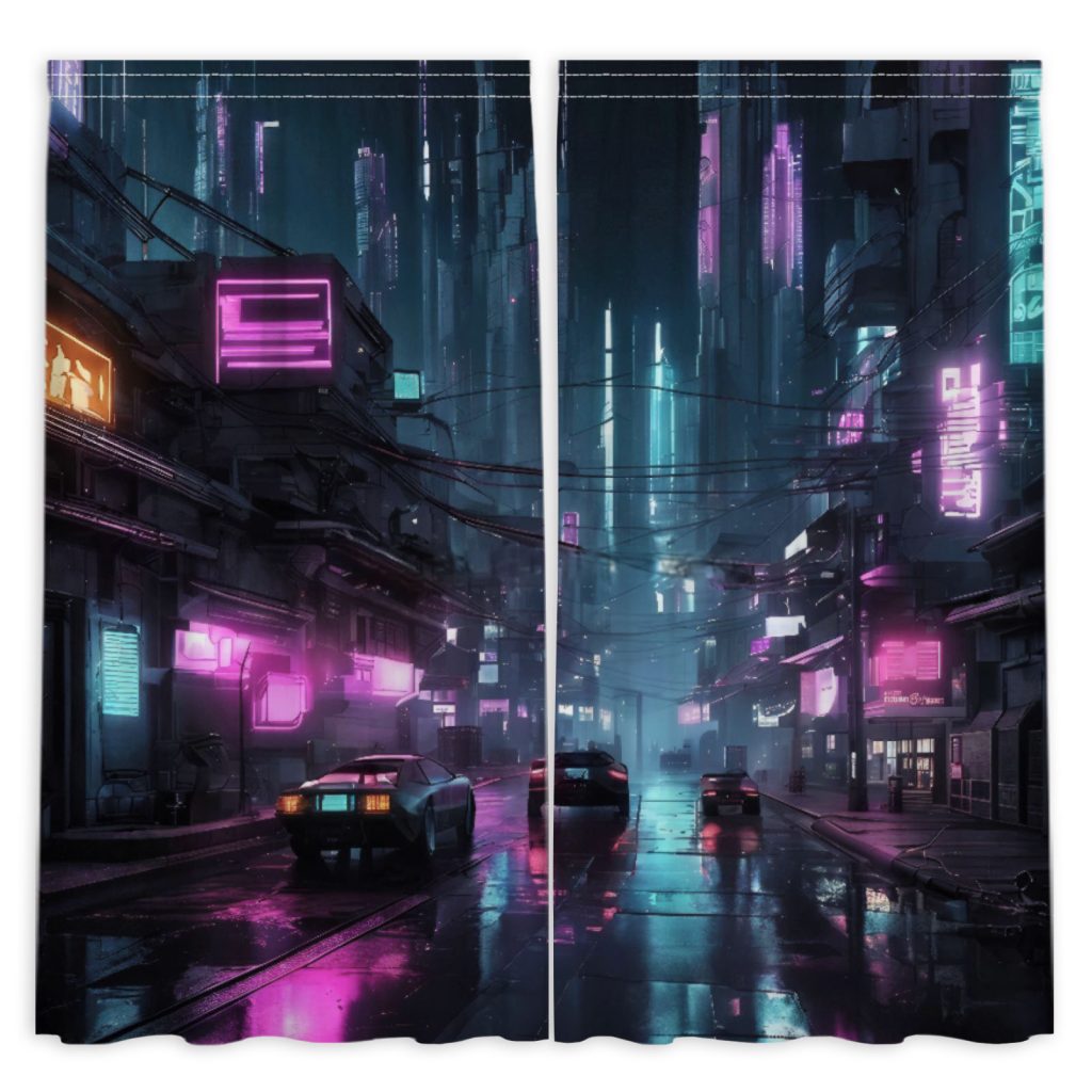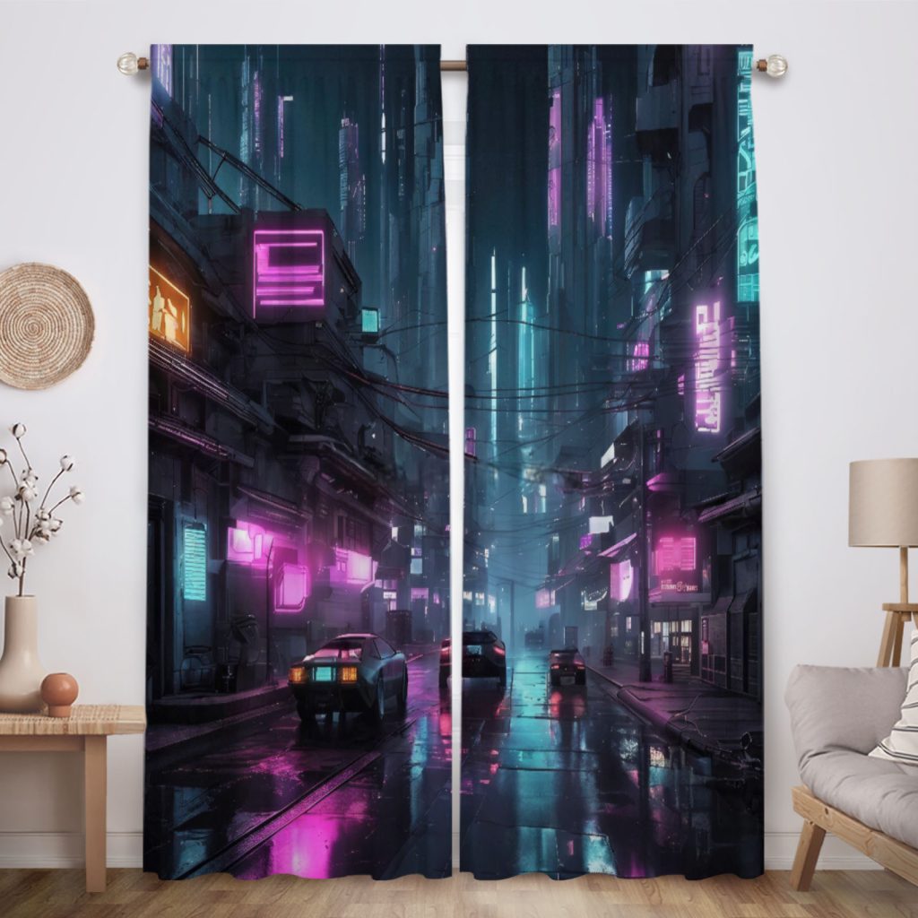 Night City Explorer Window Curtains Video Game Drapes Bedroom Home Room Decor 82″ X 84″
