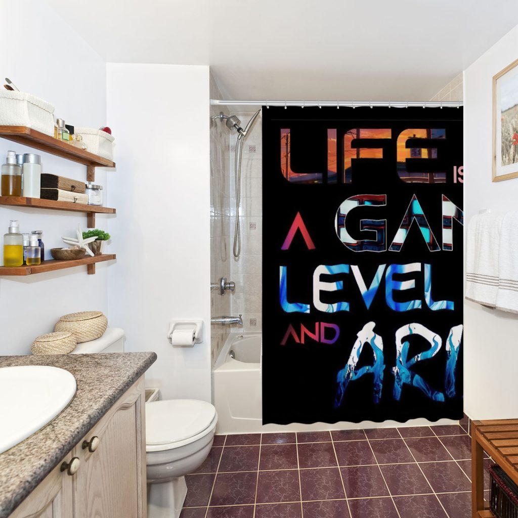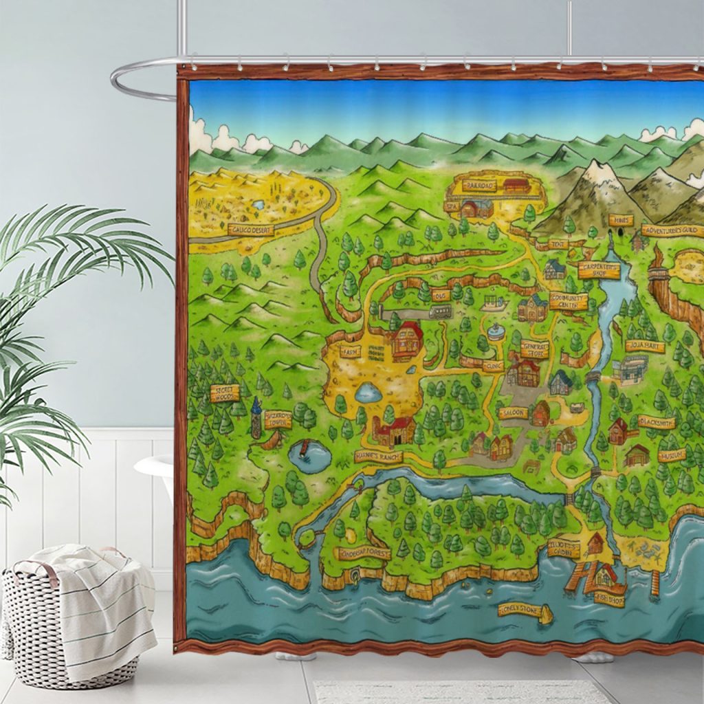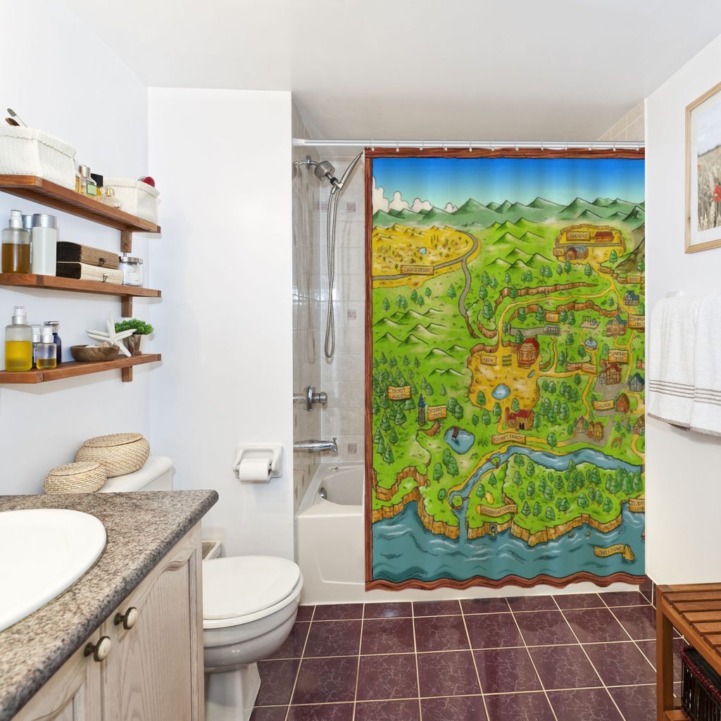 Farming Adventure Shower Curtain,Game Bathroom Decor,72″X72″(Hooks Not Included)