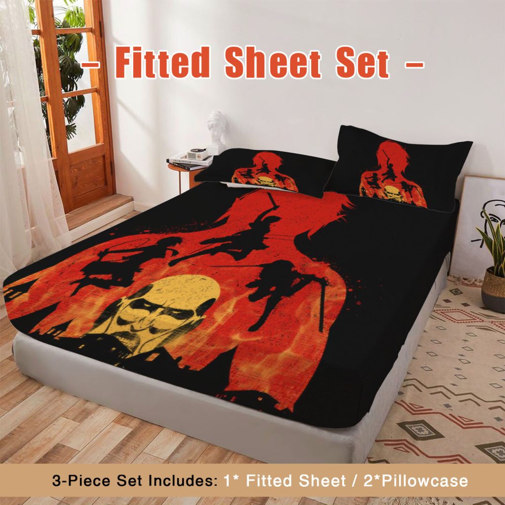 Titan Chronicles Fitted Sheet Japanese Anime Bed Sheets Bedding Set Deep Pockets Up To 16″ Bedroom Decor