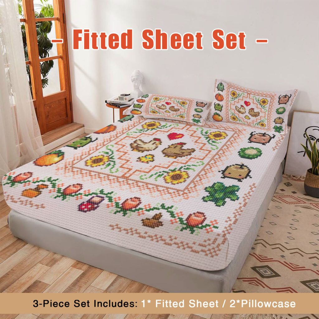 Farming Adventure Fitted Sheet Game Bed Sheets Bedding Set Deep Pockets Up To 16″ Bedroom Decor