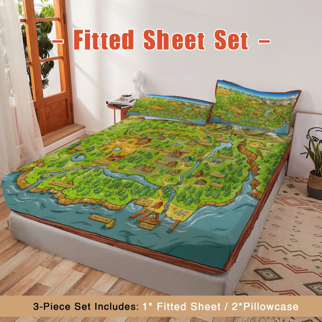 Farming Adventure Fitted Sheet Game Bed Sheets Bedding Set Deep Pockets Up To 16″ Bedroom Decor