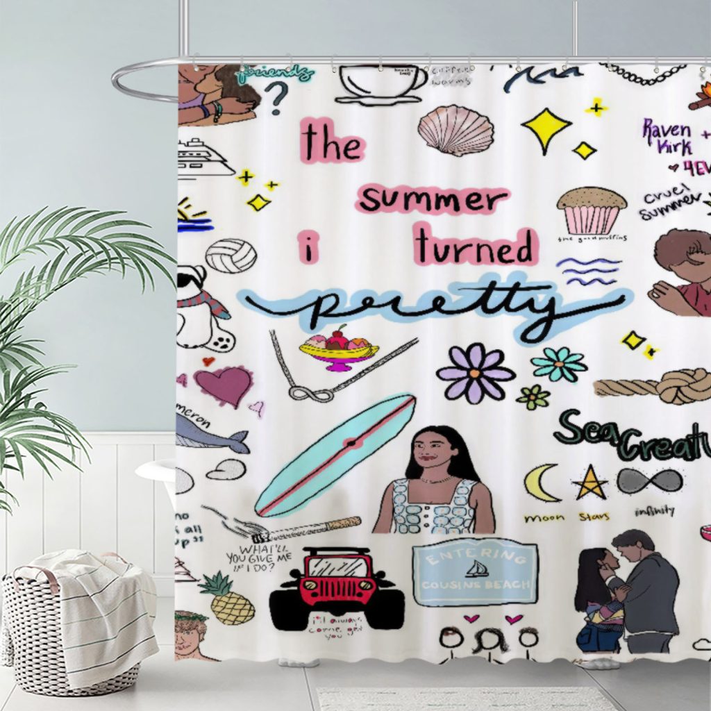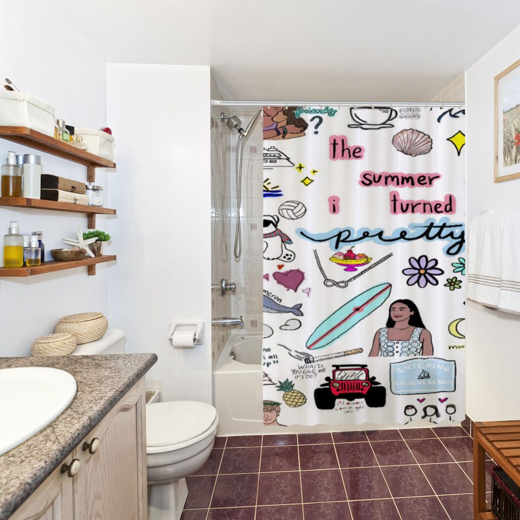 Summer Story Shower Curtain,Romance Bathroom Decor,72″X72″(Hooks Not Included)