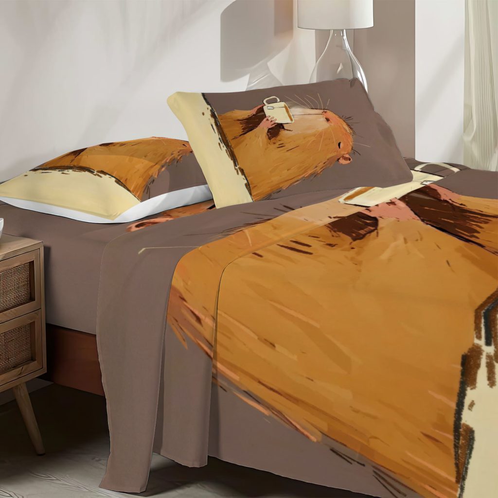 Twin Size Capybara Fitted Sheet Capybara Bed Flat Sheets Bedding Set Deep Pockets Up To 16″