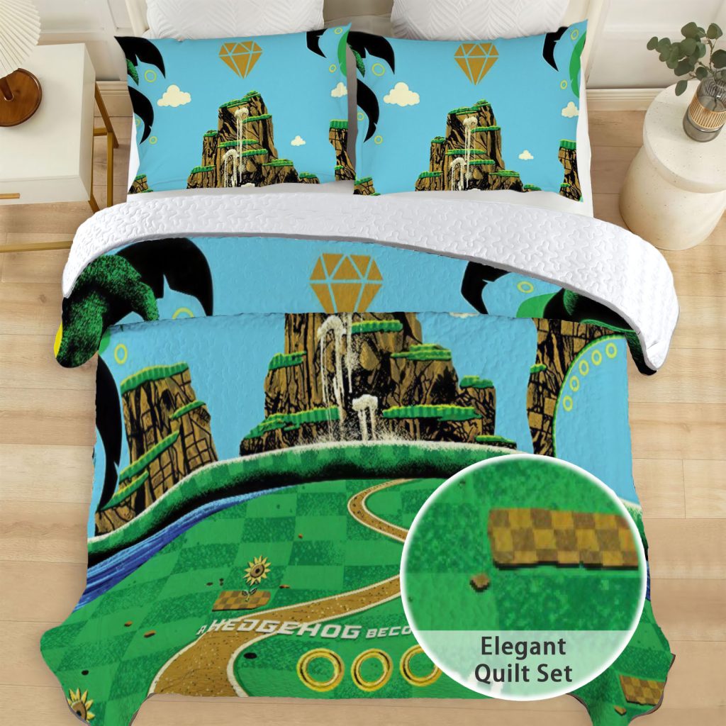 Blue Hedgehog Quilt Bedspreads High-Speed Adventure Bed Set Bedding Coverlet