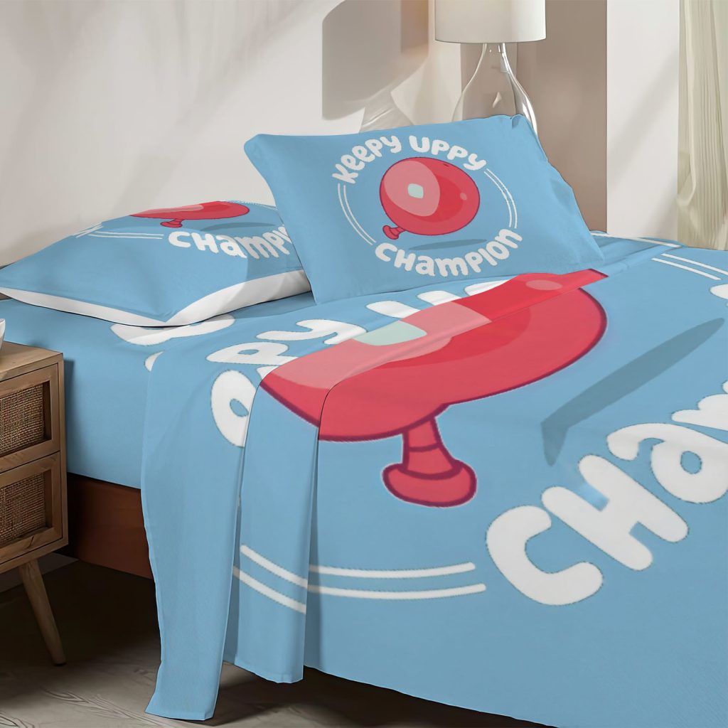 Twin Size Happy Pup Fitted Sheet Blue Adventurer Bed Flat Sheets Bedding Set Deep Pockets Up To 16″