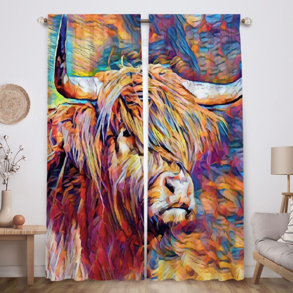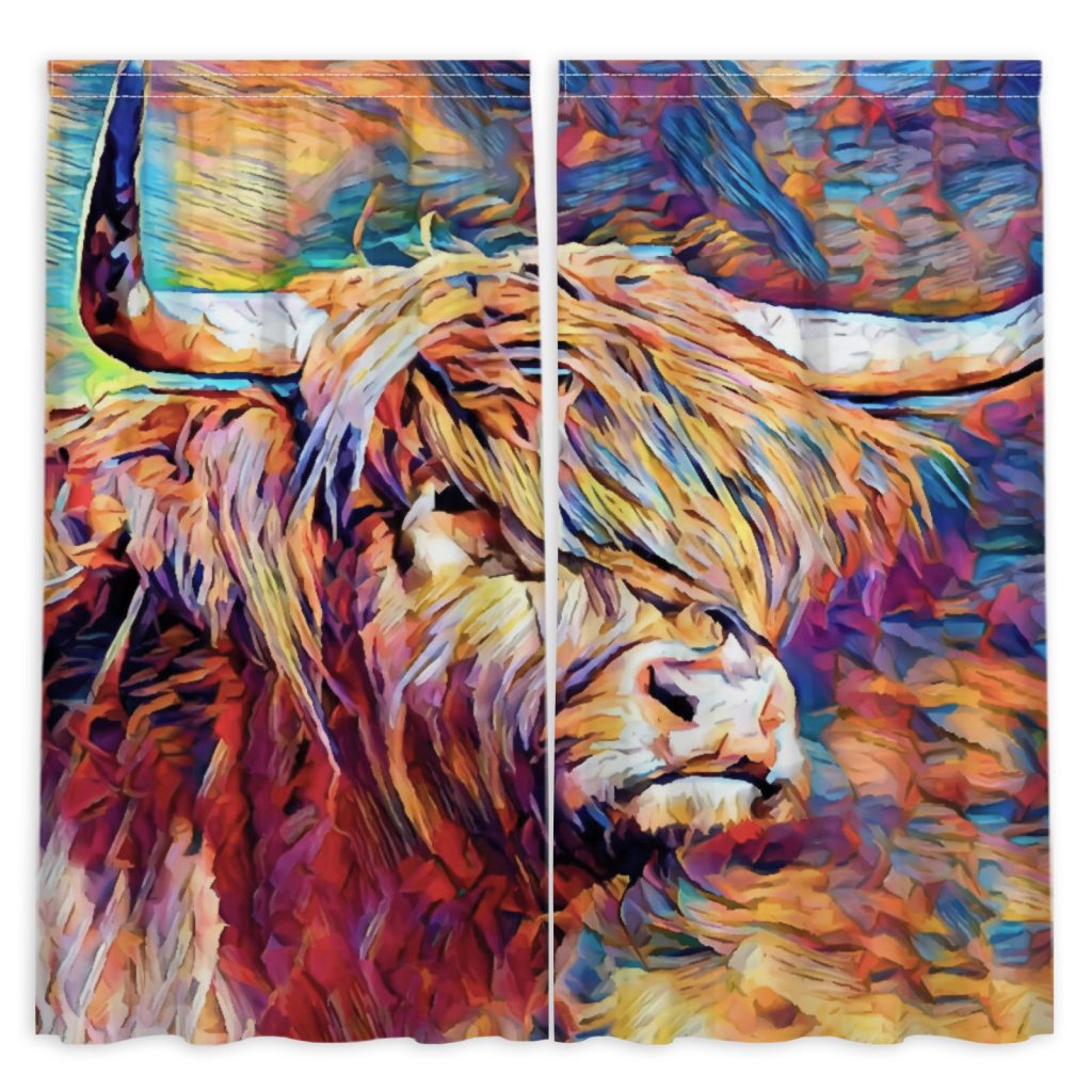 Highland Cow Window Curtains Highland Cow Drapes Bedroom Home Room Decor 82″ X 84″