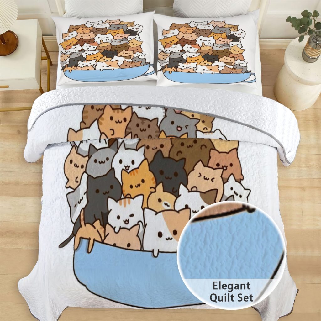 Chubby Cat Quilt Bedspreads Cute Comic Sensation Bed Set Bedding Coverlet