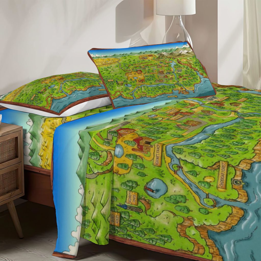 Twin Size Farming Adventure Fitted Sheet Game Bed Flat Sheets Bedding Set Deep Pockets Up To 16″