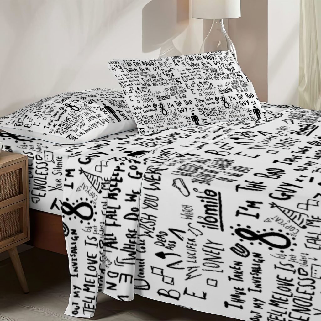 Twin Size Dark Pop Muse Fitted Sheet Wavy Soundscapes Bed Flat Sheets Bedding Set Deep Pockets Up To 16″