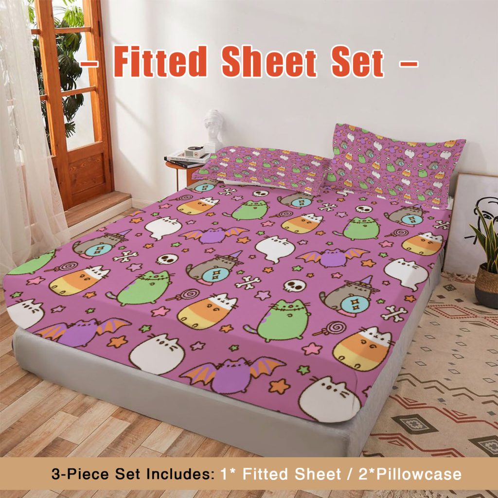 Chubby Cat Fitted Sheet Cute Comic Sensation Bed Sheets Bedding Set Deep Pockets Up To 16″ Bedroom Decor