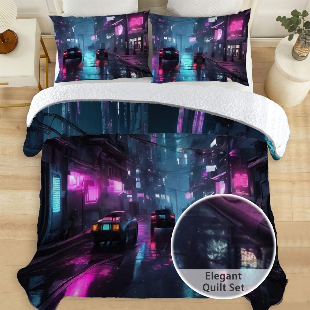 Night City Explorer Quilt Bedspreads Video Game Bed Set Bedding Coverlet