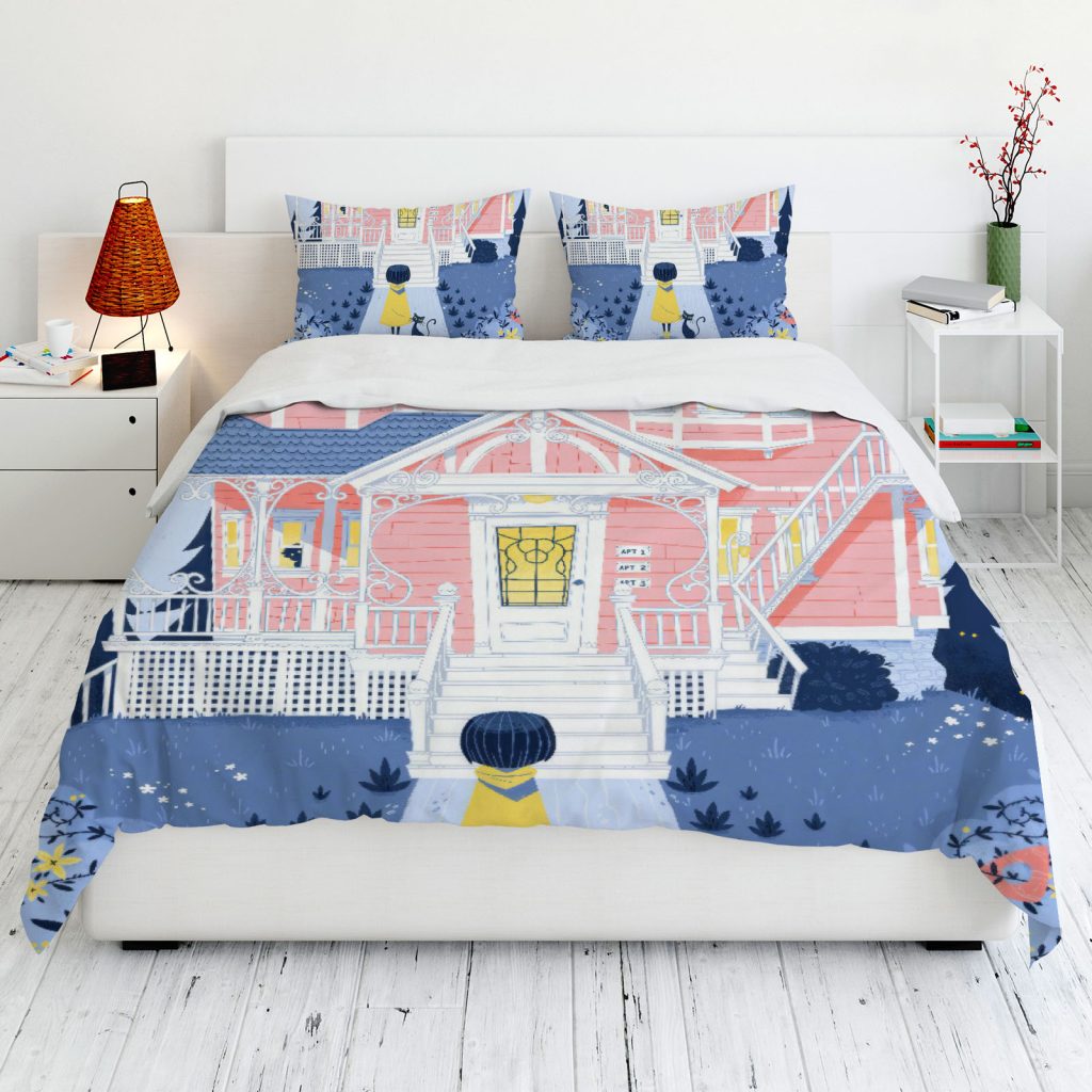 Mysterious Girl Comforter Set Button Princess Bed Bedding Sets Bedroom Decor