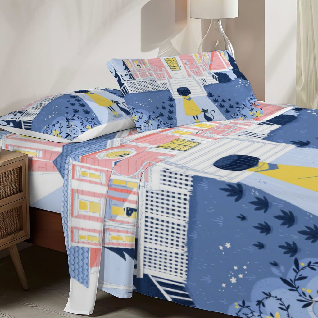 Twin Size Mysterious Girl Fitted Sheet Button Princess Bed Flat Sheets Bedding Set Deep Pockets Up To 16″