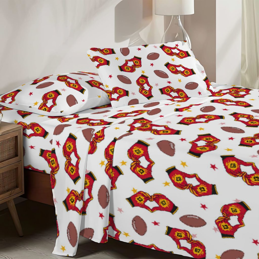 Twin Size Kansas City Fitted Sheet Professional Football Team Bed Flat Sheets Bedding Set Deep Pockets Up To 16″