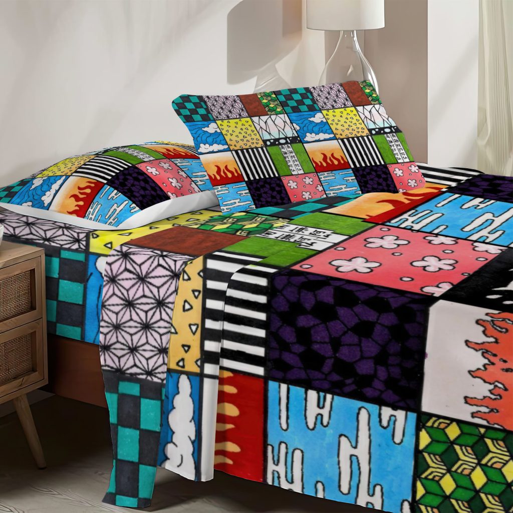 Twin Size Demon Battles Fitted Sheet Anime Bed Flat Sheets Bedding Set Deep Pockets Up To 16″