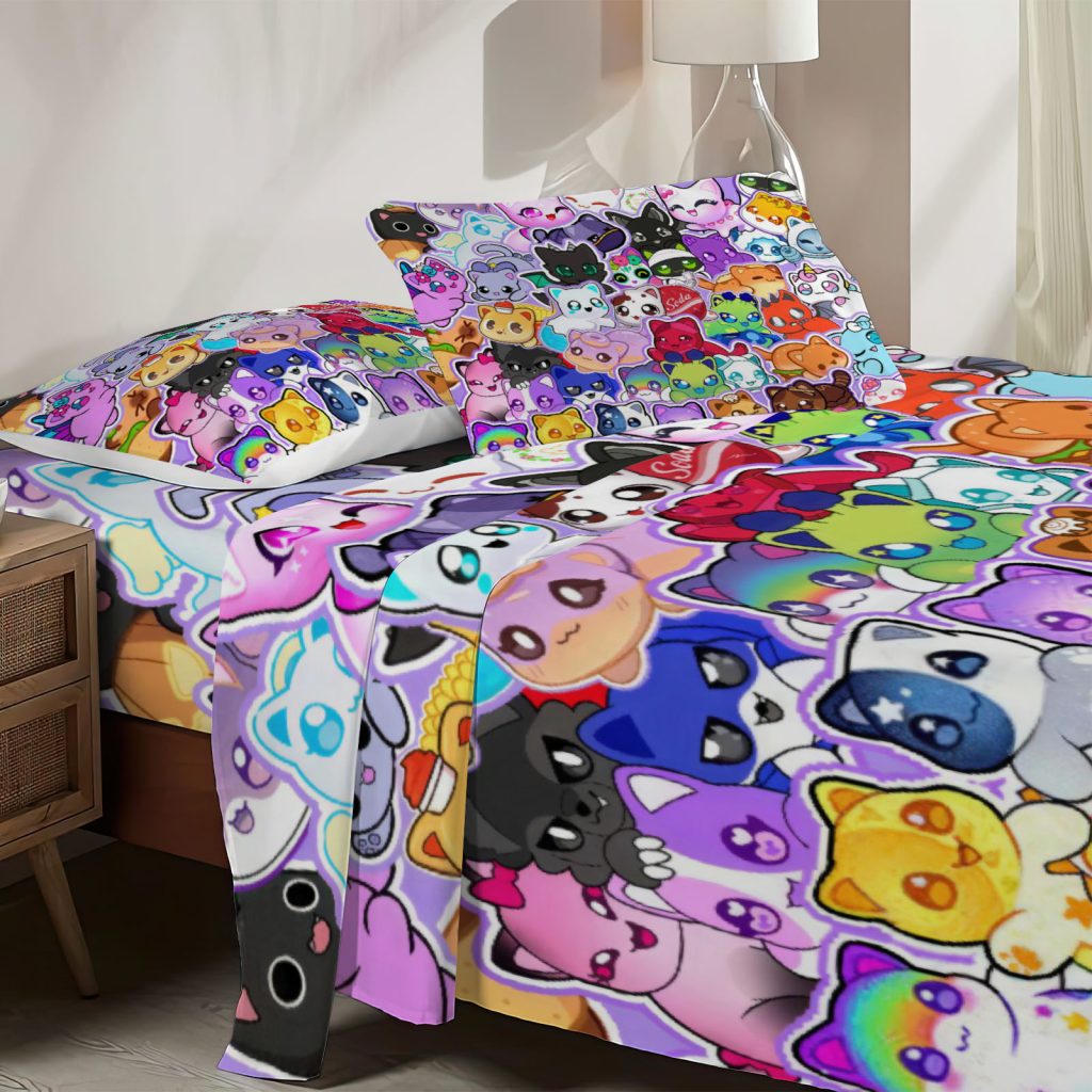 Monster Friends Fitted Sheet Anime Bed Sheets Bedding Set Deep Pockets Up To 16″ Bedroom Decor