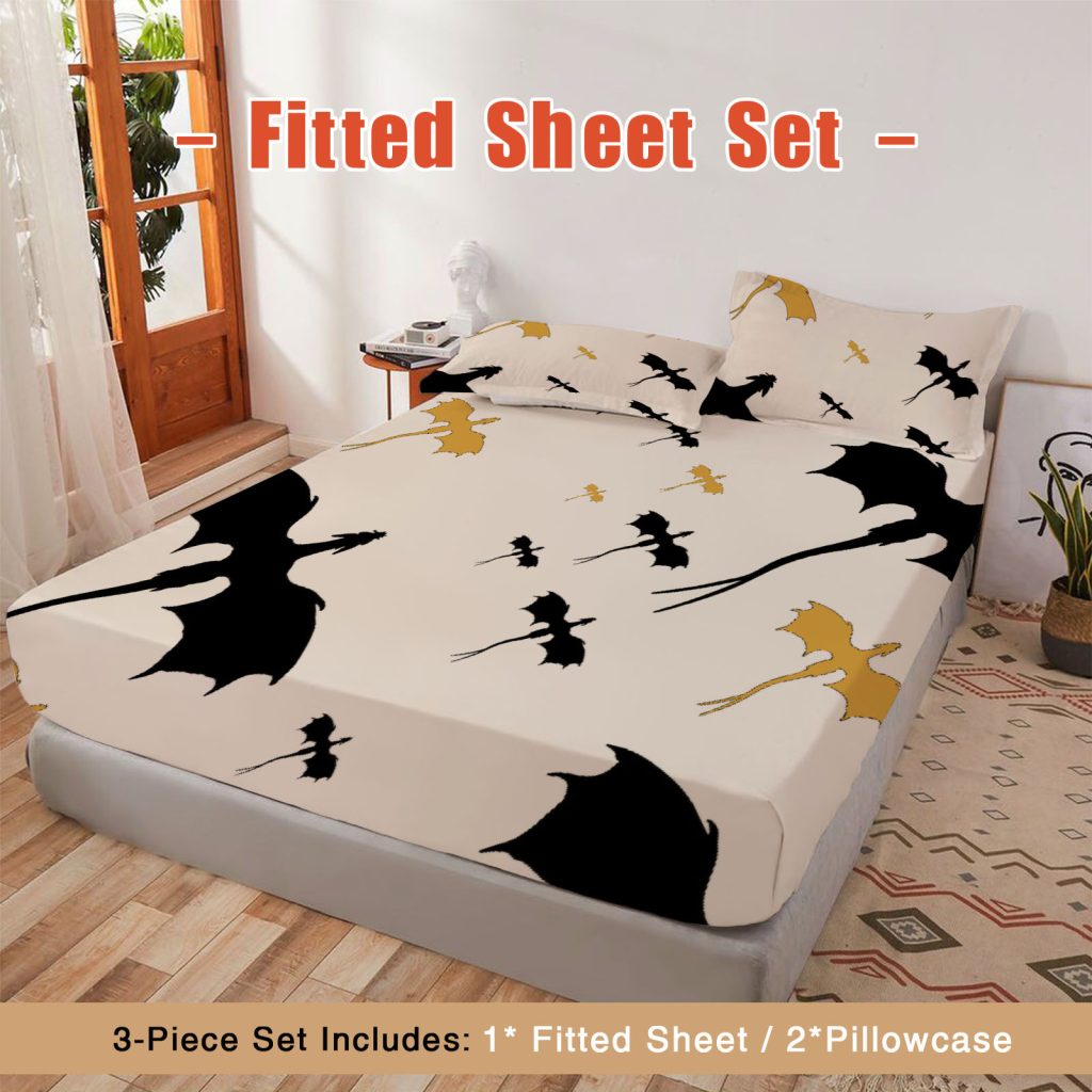 Dragon Fitted Sheet Winged Guardians Bed Sheets Bedding Set Deep Pockets Up To 16″ Bedroom Decor