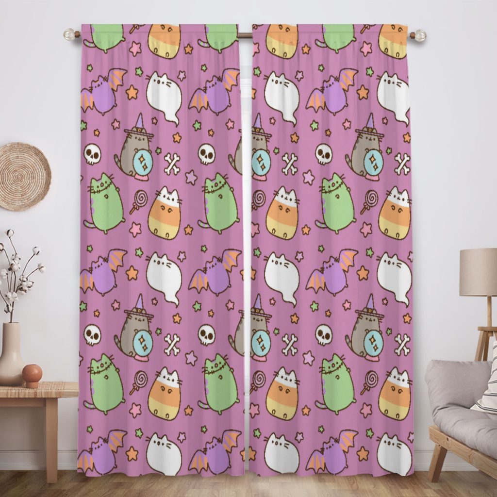 Chubby Cat Window Curtains Cute Comic Sensation Drapes Bedroom Home Room Decor 82″ X 84″