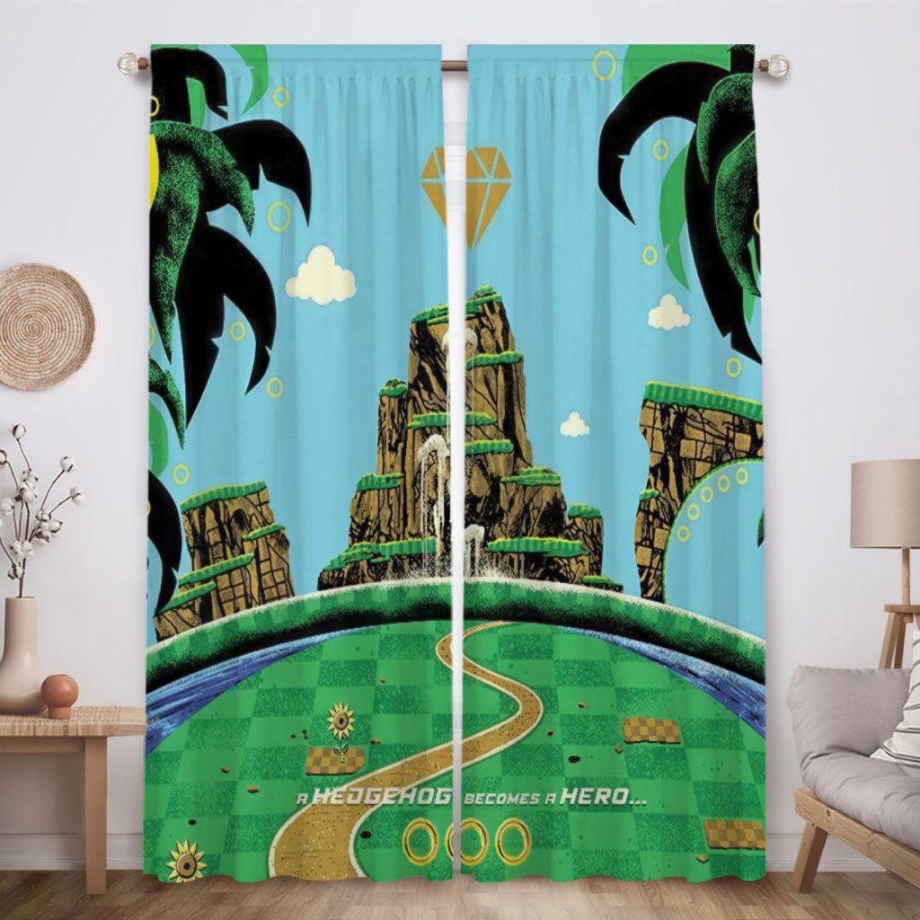 Blue Hedgehog Window Curtains High-Speed Adventure Drapes Bedroom Home Room Decor 82″ X 84″