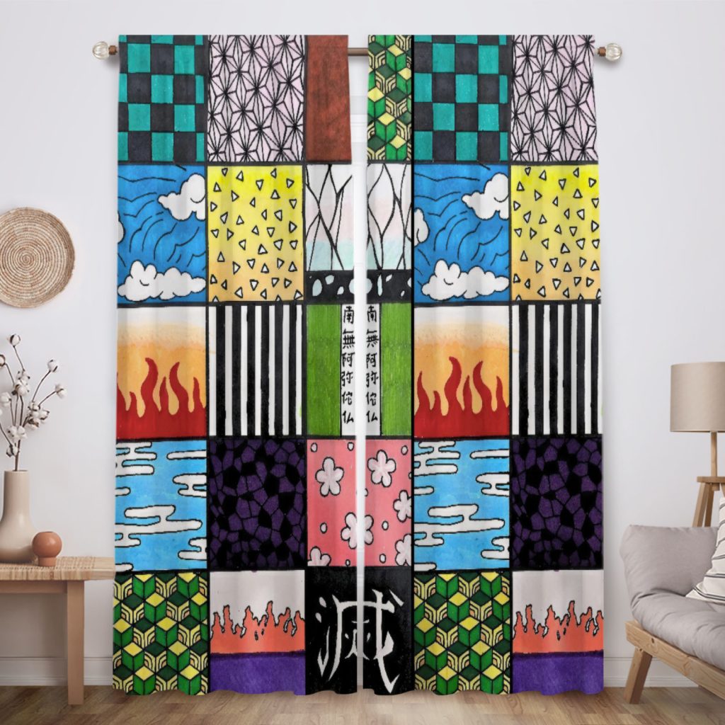 Demon Battles Window Curtains Anime Drapes Bedroom Home Room Decor 82″ X 84″