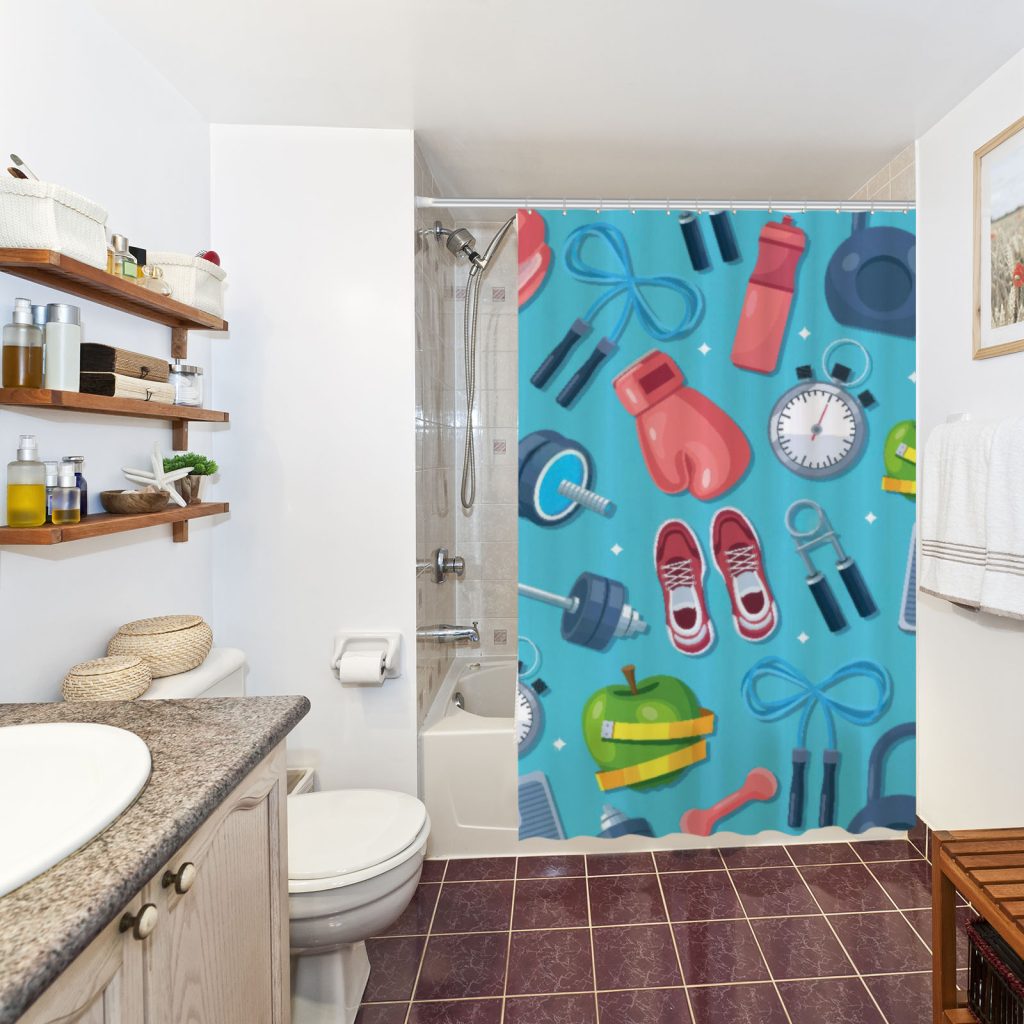Workout Shower Curtain,Workout Bathroom Decor,72″X72″(Hooks Not Included)