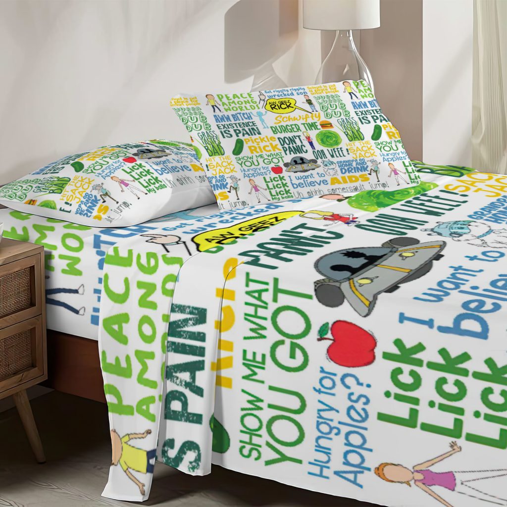 Twin Size Interdimensional Adventures Fitted Sheet Animated Series Bed Flat Sheets Bedding Set Deep Pockets Up To 16″